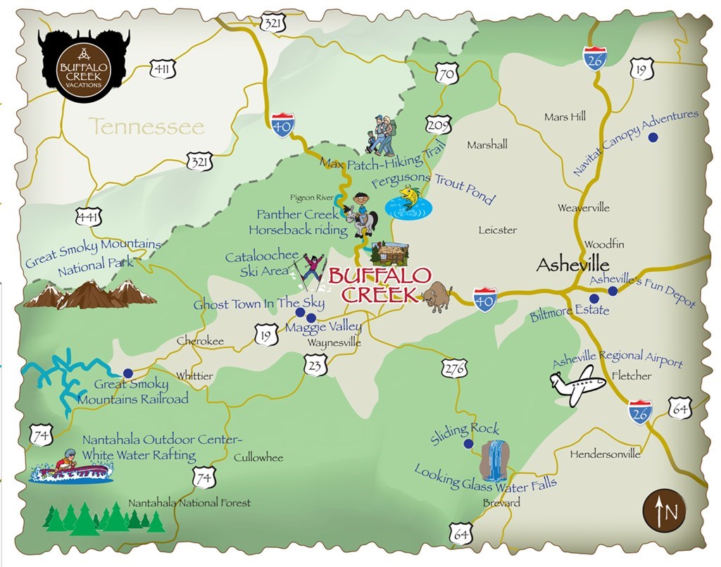 Experience the Smoky Mountains at its best! Take a short drive from Asheville to enjoy the sunrise over the Smoky Mountains and watch as the onsite buffalo come in for their morning oats. You will not be disappointed while you are sipping coffee on the deck of your gorgeous log cabin. A stay at Buffalo Creek Vacations is surely one that your family will always remember. INCLUDES: - 2 nights in 2-br cabin - 6 passes to ranch activities: goat & bison feeding, pet mini donkeys, model train tickets & more! - Wood-burning fireplace (with starter supply of wood) - Private hot tub - Access to game room at the main ranch You will stay in either Hare Pin Inn or the Horse Shoe Cottage. Both sleep two adults and up to four children comfortably and are located 3 miles from the main ranch where the bison, game room & playground are as well as lots of other animals: mini horses, goats, llamas, turkey, rabbits & birds! A $200 security deposit will be required when reservation is made and refunded within 2 weeks of checkout. Pet fee if applicable is $125. Details: 2 nights / 2 bedrooms / Sleeps up to 6 Restrictions: Subject to availability. Blackout dates include major holidays, Dec 19 - Jan 5 and Thanksgiving Week (Tue - Sun). Complete travel within 12 months from issue. You'll contact the provider directly within 9 months of purchase to select dates and book the package. Valid: Valid Sep 1 - May 30; Sun - Thu only