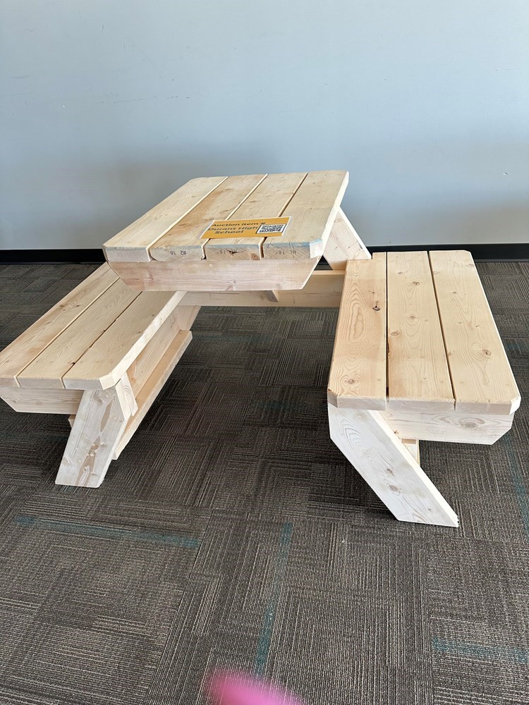Half size picnic table built by Durant High School.
