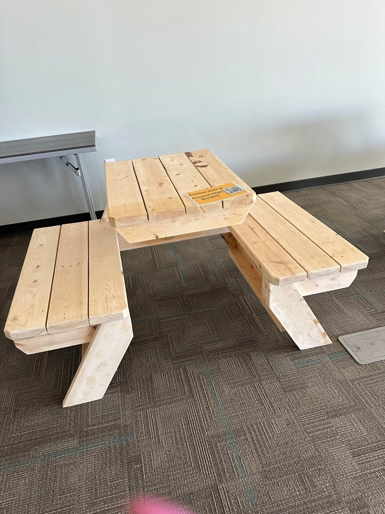 Half size picnic table built by Durant High School.