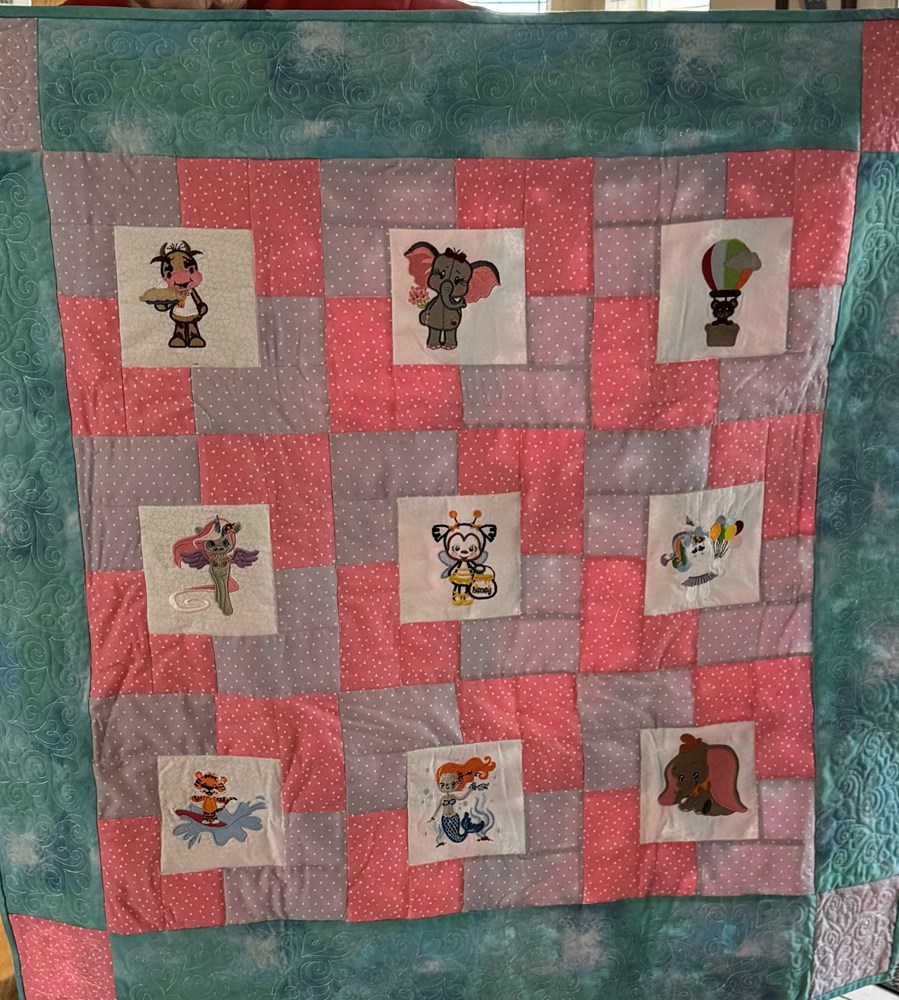 Hand-Made Quilt for a Baby (Crib Size) This is a donation by Quilter Carole Hocevar of St.Mary's Parish and a former hospice nurse of 30 years. This is her second donation to this event and is very much appreciated.